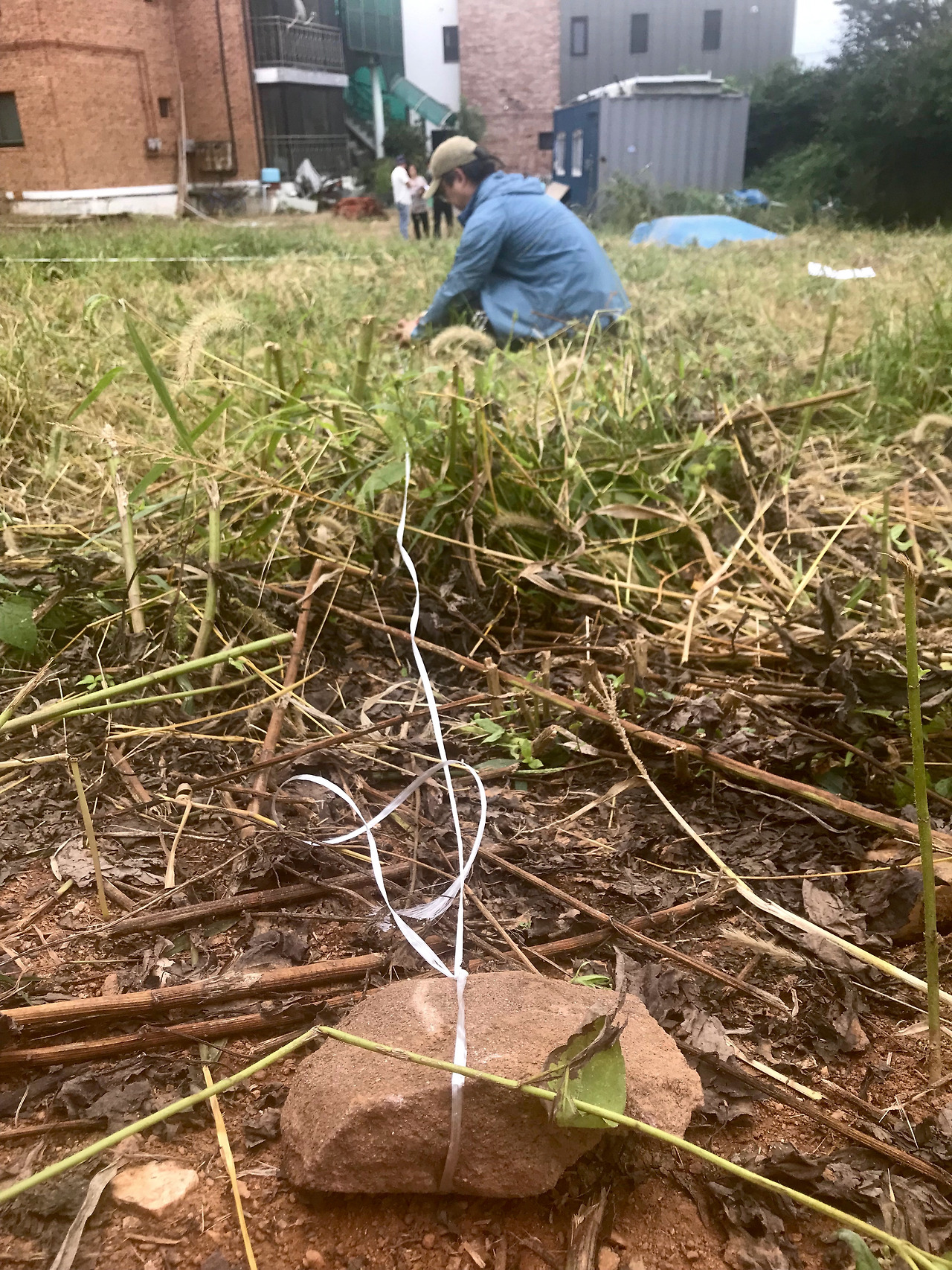 측량 말뚝을 기준으로 노끈과 파란 라커로 건축선을 표시해보았다. 주차장 위치, 마당, 집 위치, 각 집간의 거리도 확인할 수 있었다. 어릴 때 땅에 막대기로, 곱돌로 집 그리며 소꿉놀이 하던 어린 시절이 떠올랐다. 종이에 있는 그림만 보다가 진짜 땅 위에 내 손으로 그림을 그려보니 이제서야 집 짓는 게 실감나기 시작했다. 과연 그림 같은 집 지을 수 있을까?