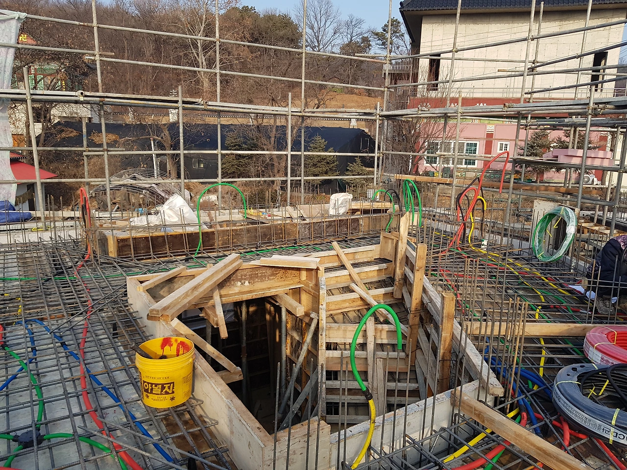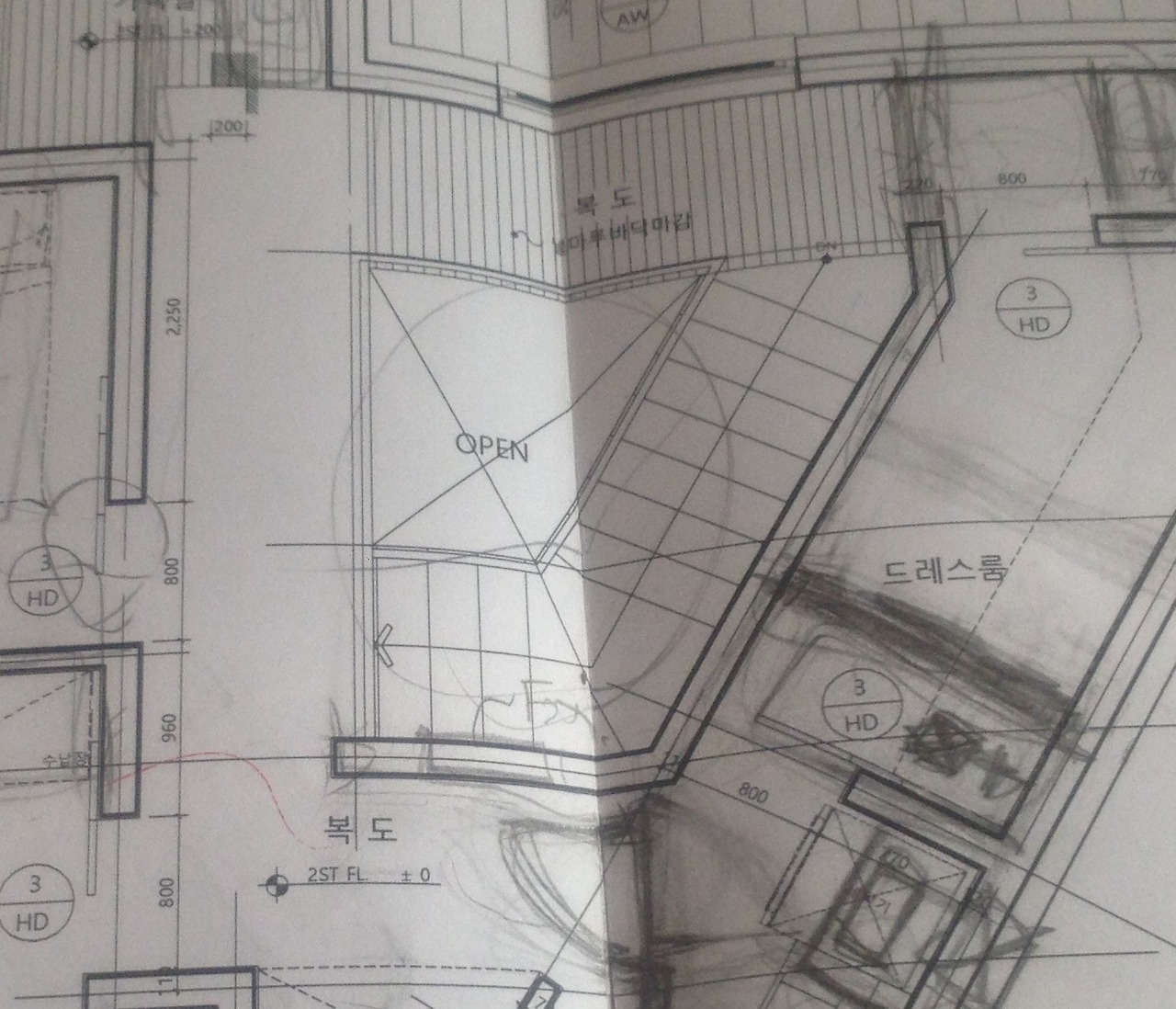 보이드에 대한 확고한 믿음에도 내 마음은 수시로 흔들렸다. 큰 면적에 대한 집착과 욕심이 내 마음 깊은 곳에서 똬리를 틀고 호시탐탐 나를 파고들었다. 보이드는 설계도면 상에 X로 표시되는데 나 같이 공간 지각 능력이 부족한 사람은 그 X를 입체적으로 상상하기가 어렵다. 보이지가 않으니까 불안하고, 그 불안한 틈을 파고들어 유혹한다. 거실 보이드 공간에 슬라브를 치면 1~2평 남짓 작은 거실이 생기고, 다이닝룸 천장에 슬라브를 치면 2~3평 남짓 작은 서재가 생긴다고 속삭였다. 실용주의자인 현장 소장님도 적극 거들었다. 하루에도 몇 번씩 보이는 것과 보이지 않는 것이 수시로 다퉜다.