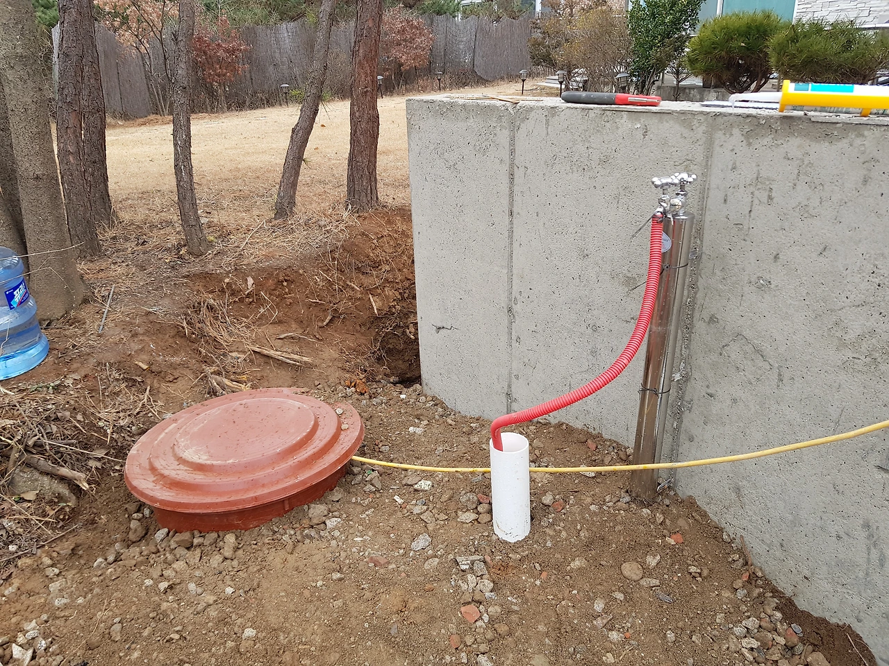 우물 연결해서 수도로 빼놓았어요. 물 받아봤는데 깨끗해 보여요.