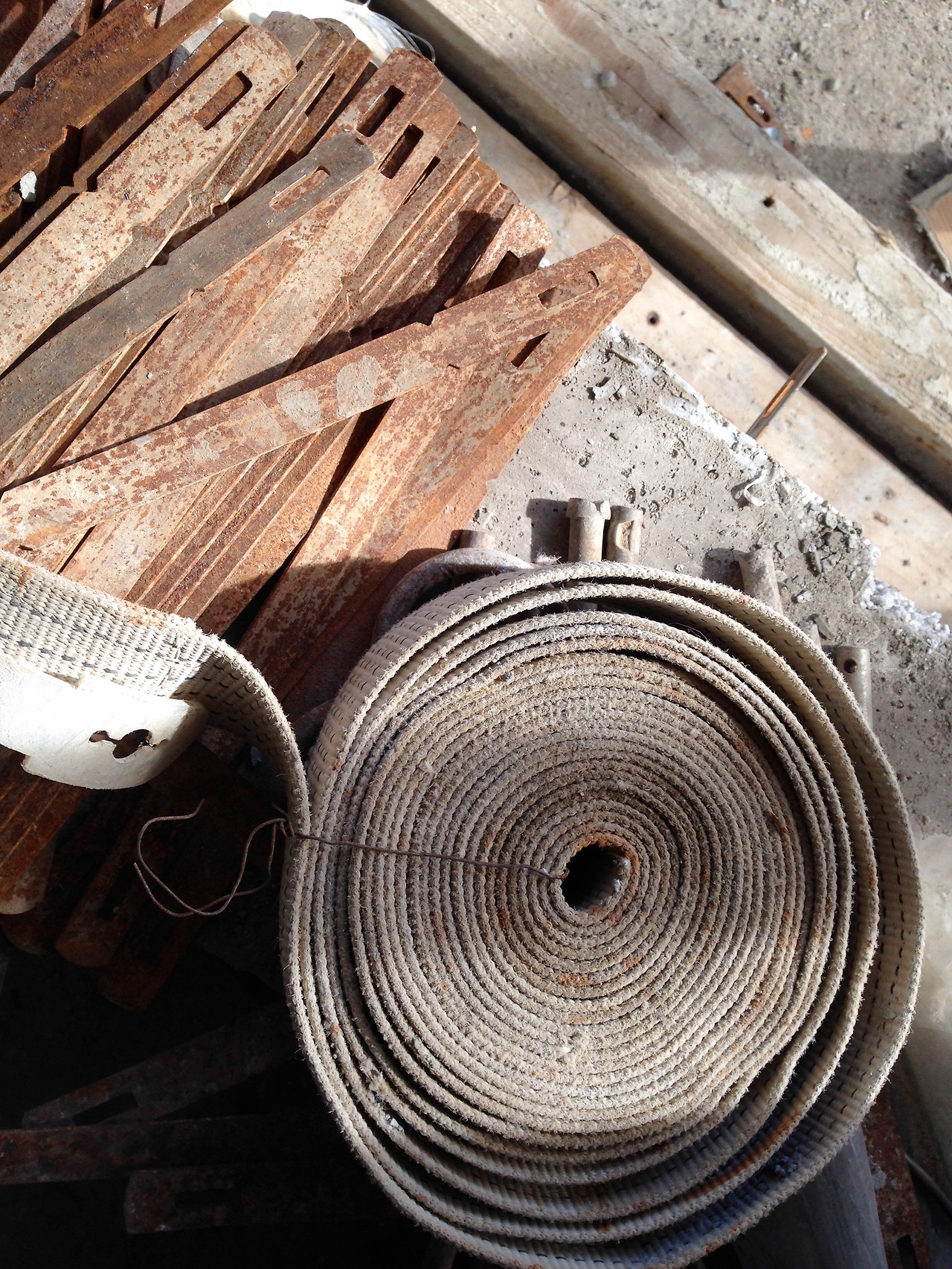 현장에 가면 일하시는 분들의 연장과 일한 흔적을 만날 수 있다. 거푸집을 잡고 있던 폼타이가 사방에 나와 있어서 각종 장비들을 걸어놓는 고리 역할을 하고 있었다. 혹시 방해가 될까 봐 공사 중에는 현장에 가지 않고, 공사를 하지 않는 일요일에 가다 보니 일하는 분들을 직접 대면할 기회는 많지 않다. 하지만 현장에 가면 손때 묻은 연장과 흔적들이 우리를 반기며 말을 거는 것만 같다.