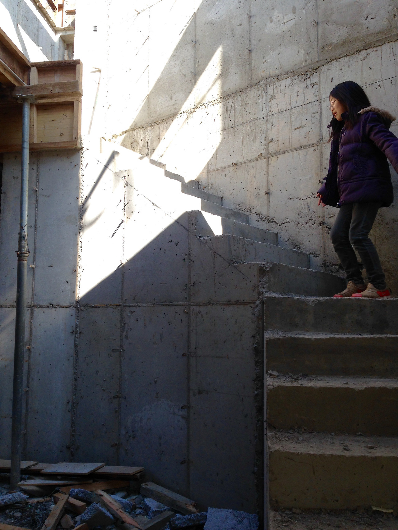 막상 골조를 끝내고 나니 제일 마음에 든 부분이 계단이었다. 자꾸 그쪽으로 눈길이 갔다. 벽체의 입면도 깔끔하고 반짝거렸다. 벽지나 페인트로 덮지 않고 그냥 노출 콘크리트로 두어도 좋을 것 같았다. 욕심 같아서는 지붕에 천창을 뚫어서 빛이 계단실 아래로 쏟아지면 좋겠다, 는 생각도 있었지만, 결로 때문에 천창을 말리는 사람도 많고, 비용 측면도 부담되어 일단 마음을 접었다. 나의 설레는 마음, 아쉬워하는 마음이 현장 소장에게 전해졌는지, 잘 연구해서 예쁘게 만들어보겠다고 한다. 과연 어떻게 만들어질까? 기대가 된다.