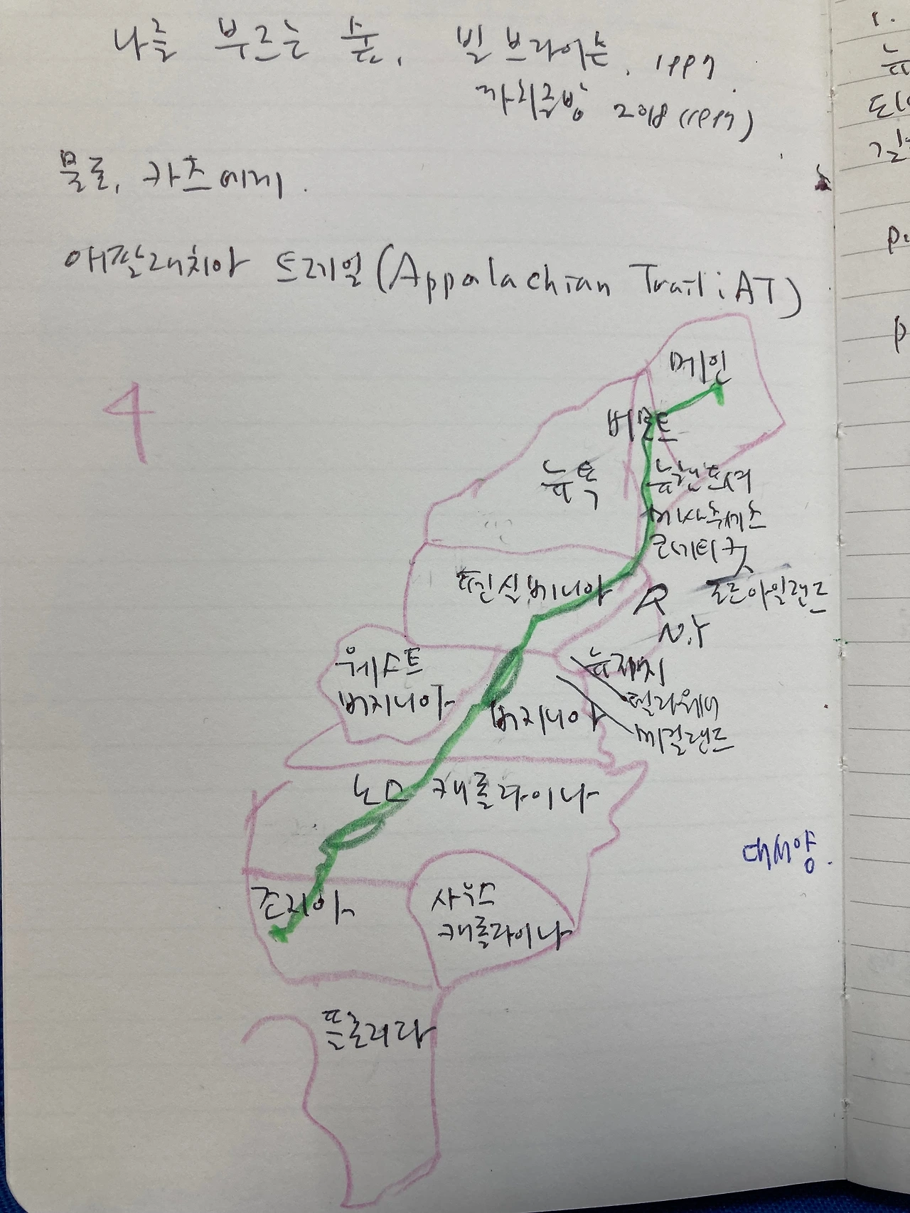 이 책을 읽기 전 독서 노트에 미국 지도를 그려보았다. 이렇게 지도를 그려보니, 이제 미국이라는 나라가 머릿속 하나의 폴더로 자리를 잡은 느낌이다. 그동안 봤던 많은 영화와 책들의 좌표도 딱 잡히고 배경이 되는 마을의 정서도 조금은 더 깊게 느껴졌다. ‘브로크백 마운틴’의 그 적막한 와이오밍 산속 목장도, ‘흐르는 강물처럼’과 ‘가을의 전설’의 몬타나도 내 머리와 마음에 제대로 자리를 잡았다.