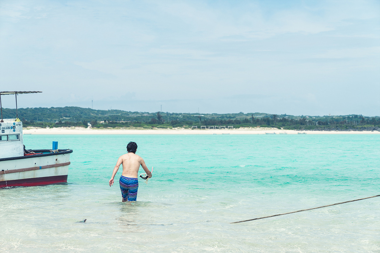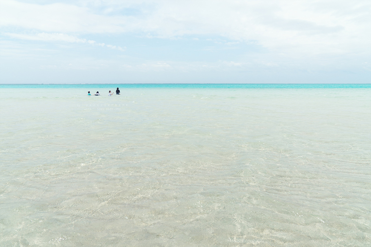 유리가하마는 조수의 차에 의해 나타나기 때문에 특정 기간에만 볼 수 있다. (요론 섬 공식 관광 홈페이지 http://www.yorontou.info/에 가면 유리가하마 출현 일정을 확인할 수 있다.) 내가 갔던 날은 유리가하마 출현 기간의 첫날이었기 때문에 모래가 수면 위로 드러나지는 않고 발목 정도까지는 물이 찼다. 바다 한가운데에 서서, 사방의 바다를 둘러보는 기분은 말로 표현하기 어려울 정도로 이상하고, 신기하고, 재미있었다. 사토 상 일행과 사진도 찍고 찍어주고 하면서 함께했기에 더 즐거웠는지도.