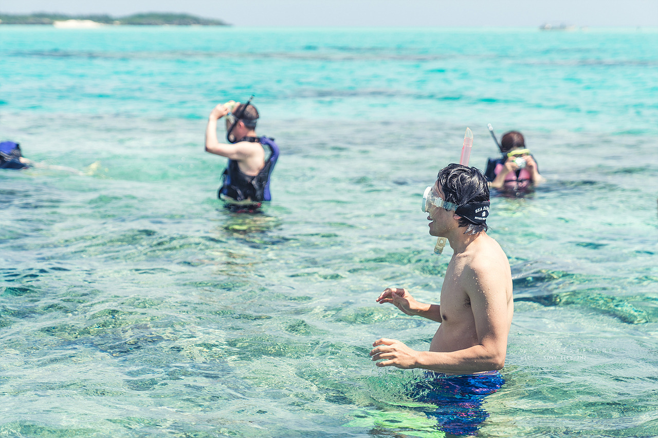 픽업 차량이 오가네쿠 해변에 도착해 배를 타기 전에 투어 사장님이 사람들을 모아놓고 이런저런 설명을 해주셨다. 15명 정도 되는 사람들을 둘러보니 외국인은 나 혼자였고, 사장님은 영어도 아예 못하시는 분이었다. 사장님은 내가 일본어를 알아듣는다고 생각하셨는지 아니면 나도 일본인이라고 생각하셨는지는 모르겠지만, 일본어로 긴 설명을 끝내셨고 그 설명을 듣자마자 사람들은 하나둘씩 스노클링 장비를 챙기기 시작했다.