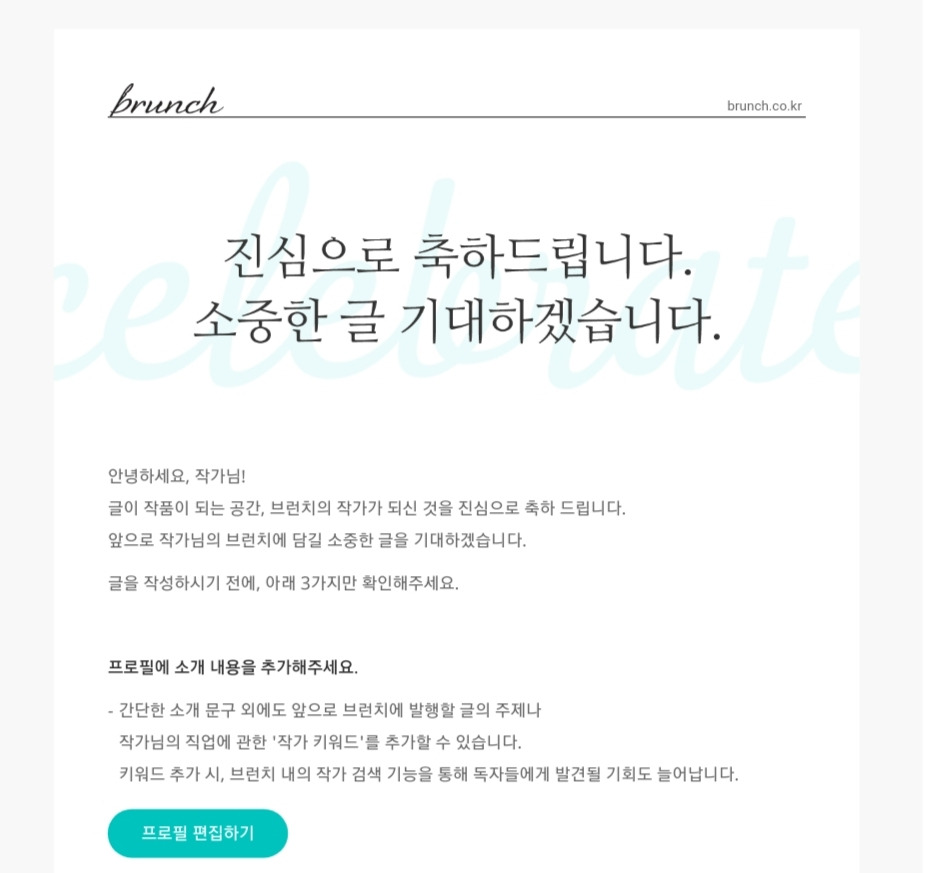 '브런치 작가가 되신 것을 진심으로 축하드립니다.'