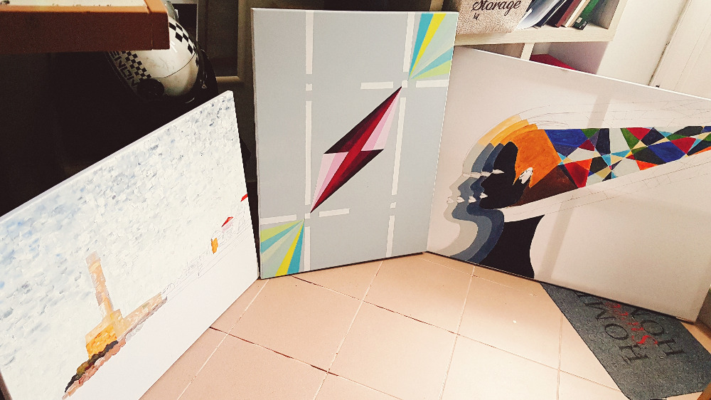왼쪽은 내가 그리다 만 하니아 항구의 풍경, 다른 두 개는 베로니카와 바고스의 작품