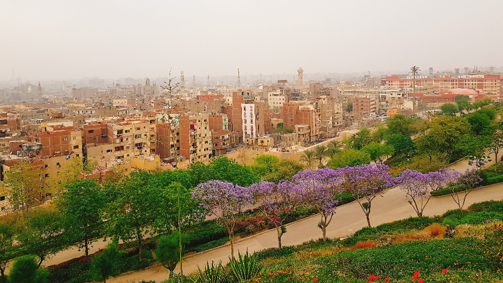 먼지가 가득한 하늘과 알아즈하르 공원에서 바라본 카이로 전망