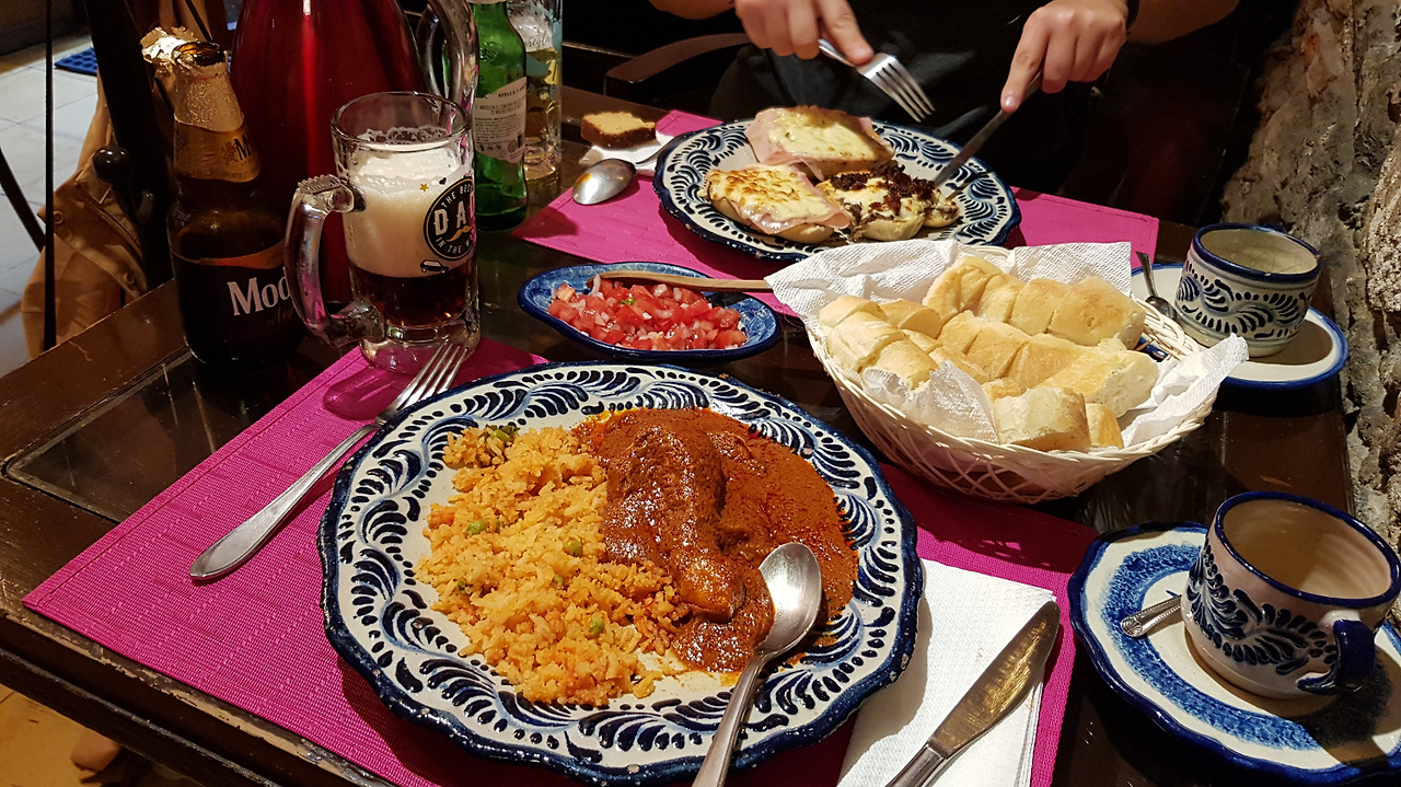 페니가 혼자 와보았던 맛집에 날 데려가 주었다. 내부 인테리어가 엔틱하고 너무 예쁜 식당이었다. 나는 중남미의 전통음식인 몰레(Mole)를 제대로 먹어보고 싶었는데, 마침 이곳에 있길래 시켜보았다!