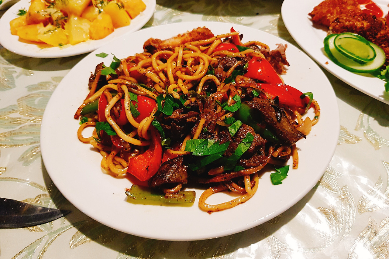가장 맛있게 먹었던 음식, 보소 라그만. 찰진 볶음면과 부드러운 말고기가 일품이다.