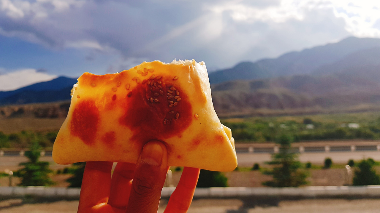 비슈케크에서 촐폰아타로 넘어갈 때 지평선을 바라보며 먹는 삼사는 그야말로 최고다. 삼사 자체만으로도 맛있는데, 이 멋진 풍광을 보며 육즙 가득한 삼사를 입 안 한가득 베어 물면, '중앙아시아에 오기 참 잘했다'는 말이 절로 나온다.