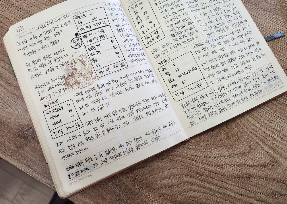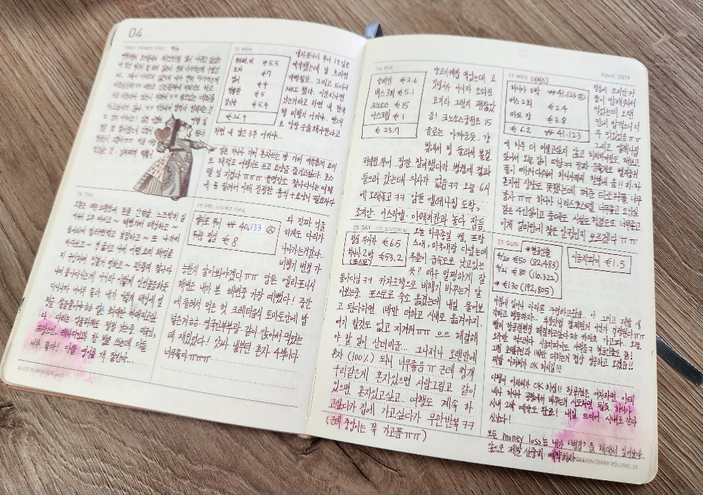 여행동안 캐리어에 넣고 다니며 썼던 일기장