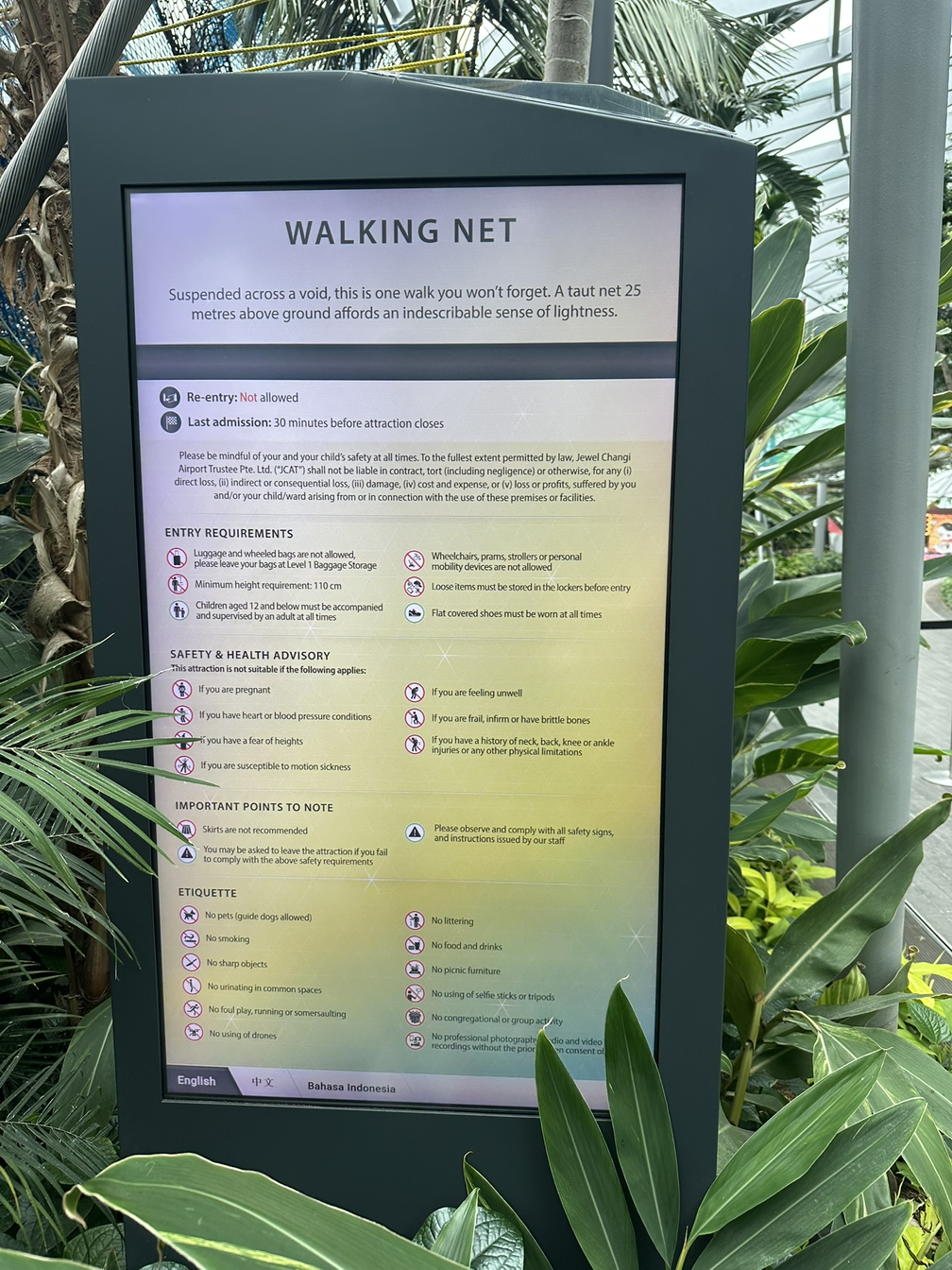 *이용방법: 창이공항 1터미널 쥬얼 5층- 캐노피 파크와 워킹넷 티켓을 구입 (SD 18-약18000원)