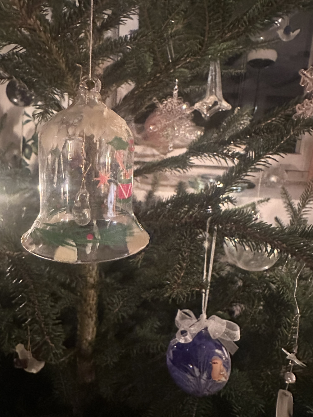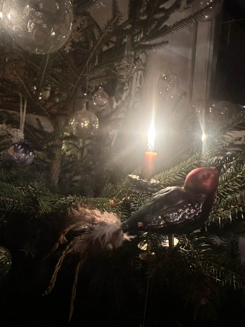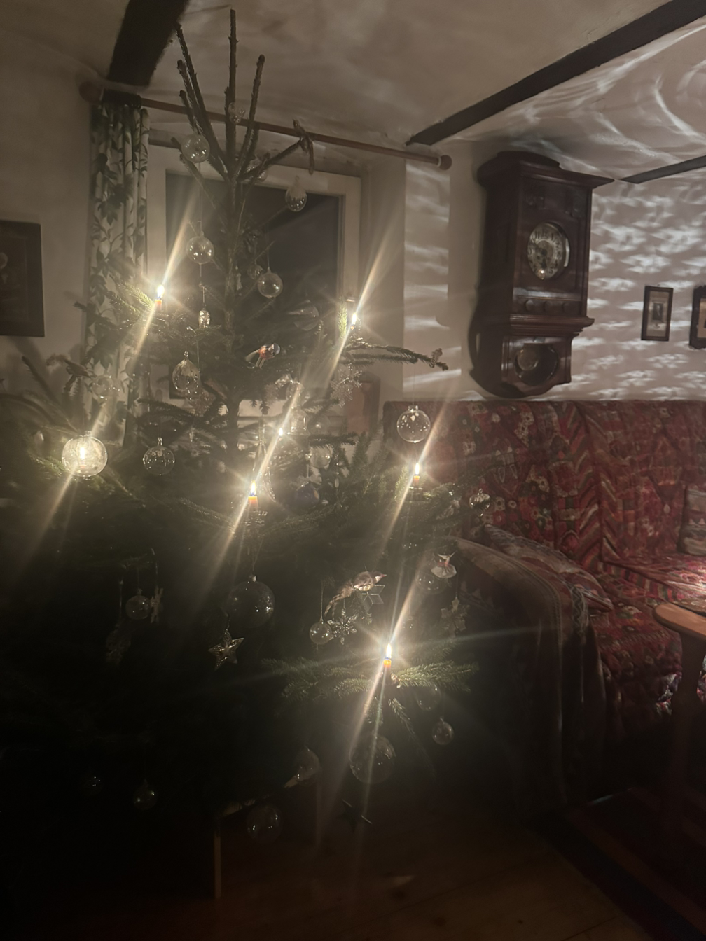 동네 농장에서 사온 소나무에 유리장인들이 만든 장식품들은 반짝이고 귄터를 위해 작은 초를 켜고 나무에도 불을 밝혔다.