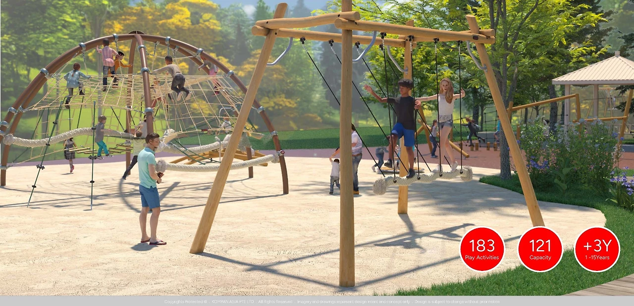그래서 우리는 난이도는 다르게, 놀이의 흐름은 하나로 이어지도록 계획하고, 다양한 신체 조건과 발달 단계에 맞춰 접근할 수 있도록 유니버설 디자인 관점에서 공간을 구성했습니다.