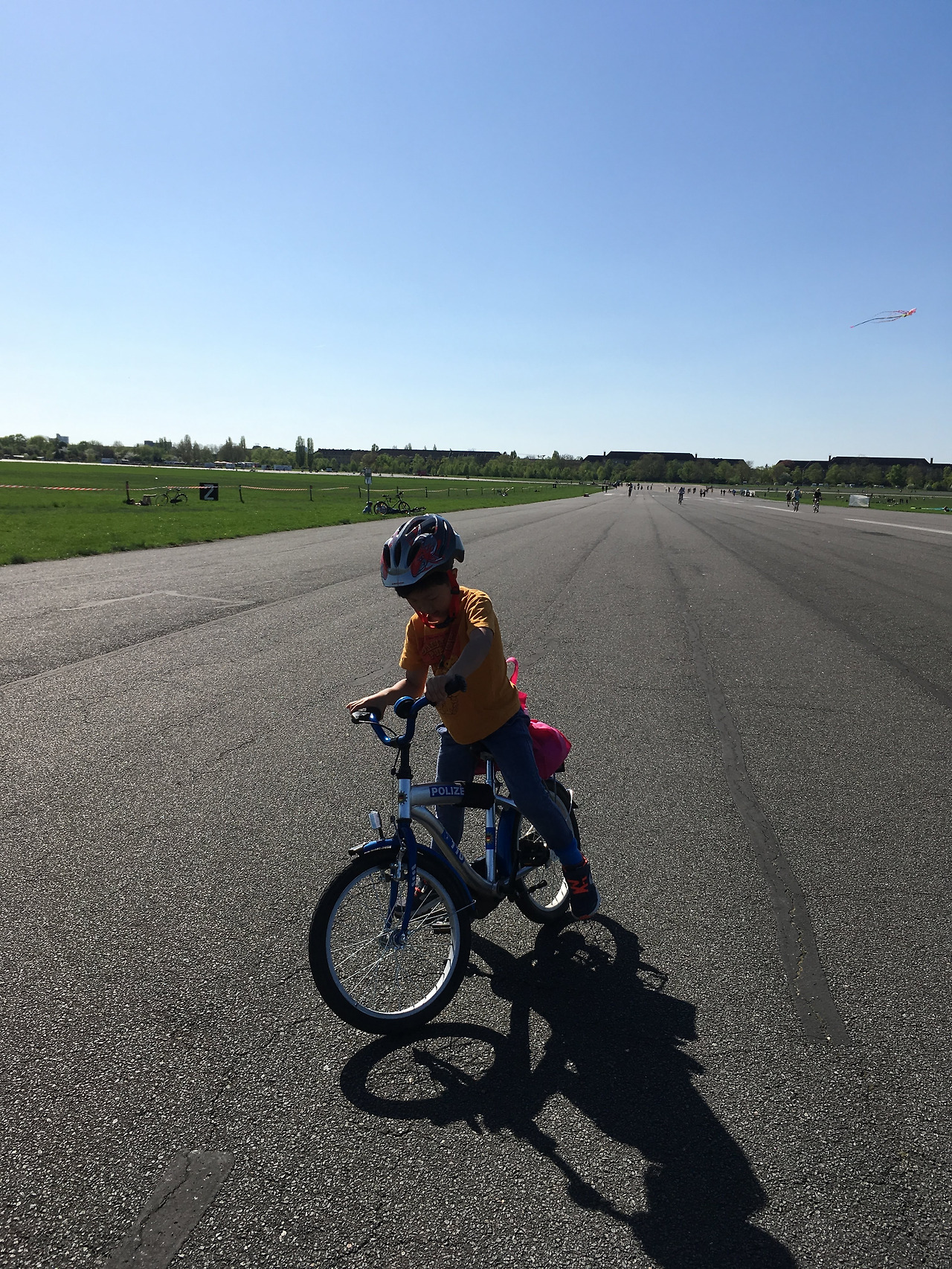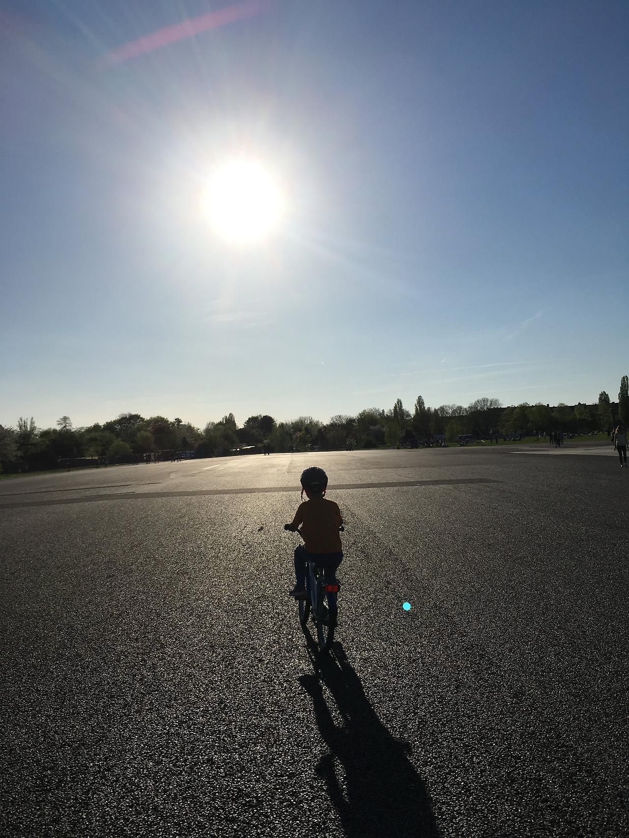 공원에 도착해서 드넓게 펼쳐진 공간에서 휘청휘청 타기를 5분 후, 내 손을 떠나 혼자서 페달을 힘차게 돌렸다!