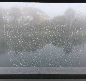 다리 난간에서 만나는 거미와 오리,