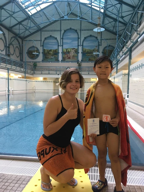 10회의 수업 동안 강사는 아이들의 각자 다른 능력에 따라 재수강을 해야 할지, 자격시험을 봐도 될지를 판단해서 알려준다. 10명 중 4명의 아이가 25m를 쉼없이 헤엄치고, 어깨깊이의 물 속에서 링 주워오기를 해내고, 해마( Seepferchen) 자격을 획득했다. 나도 이렇게 감격스러운데, 아이는 얼마나 깊이 진하게 기쁠까?