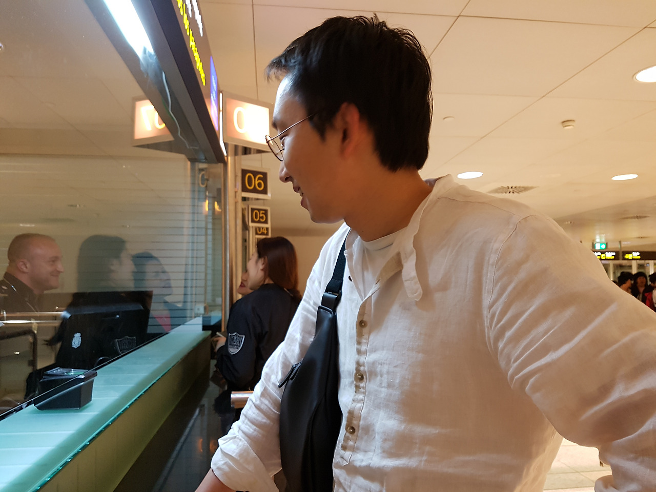 늦은 시간이라 당직인 공항 직원들만 남아 업무중이었다. 수속을 밟는 줄이 상당히 길었지만 신랑 뒤로 보이는 저 스페인 직원은 여유가 넘쳤다. ㅎㅎ 최소 200명 정도? 수속을 밟으려 대기중인데 저 세관직원은 한국관광객 모녀에게 '어려보인다 그정도 나이면 여기서는 아가씨다"라며 기분좋은 인사를 건네는가 하면 갑자기 스마트폰을 꺼내 저장된 사진을 보여주며 "이 분이 내 엄마"라며 뜬금포 소개를 한다.
