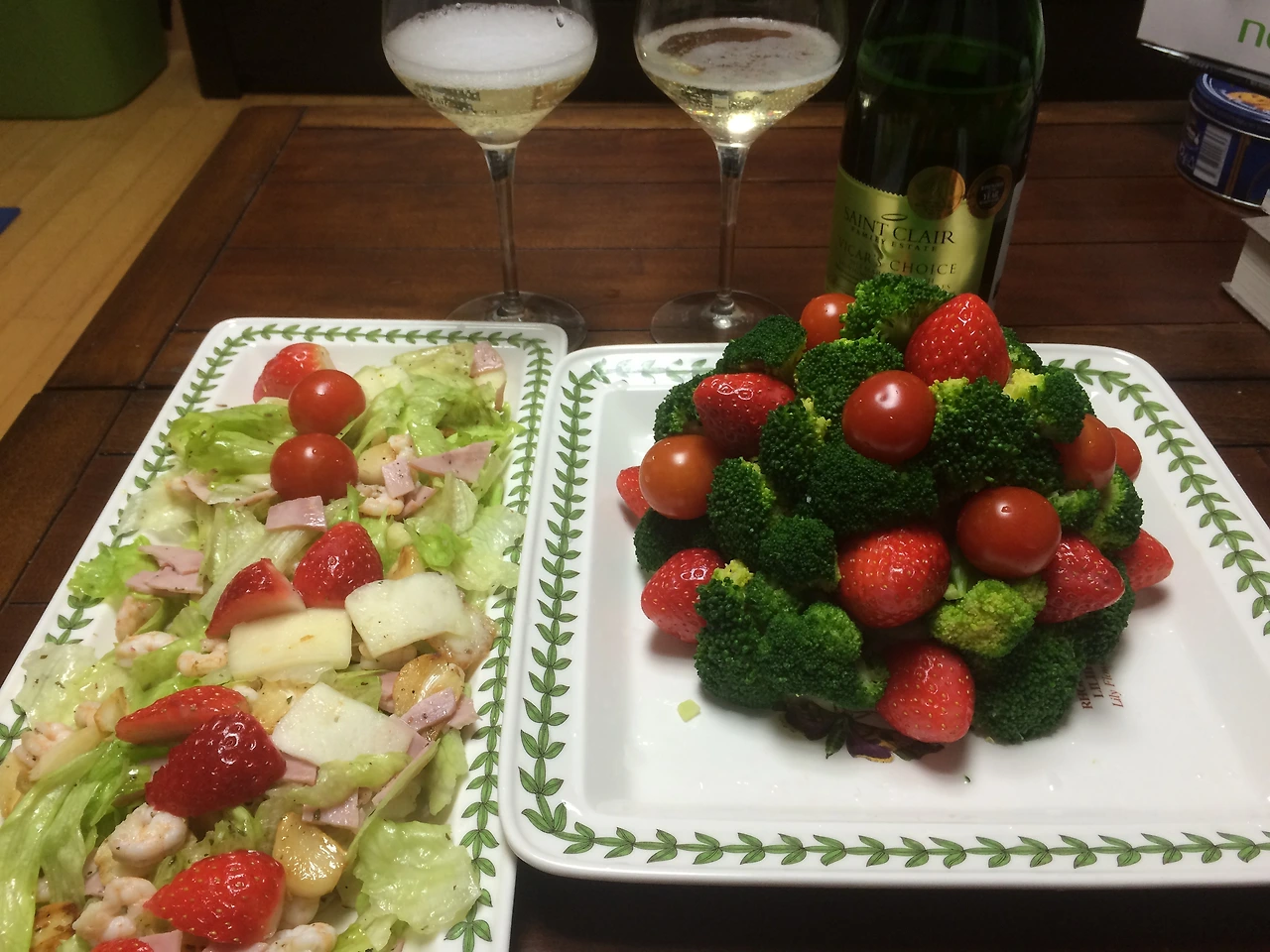 3. 성탄절 기념 샐러드와 브로콜리, 딸리, 토마토로 만든 크리스마스 트리