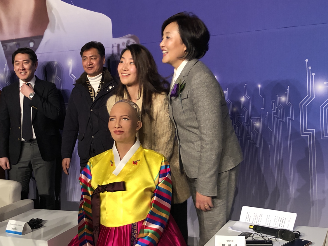 이날 행사를 주최한 더불어민주당 박영선 의원은 "우리나라가 소피아에게 '서울 명예 시민권'을 수여하자"고 제안하기도 했다.