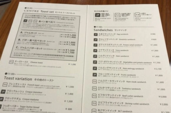 토스트 세트 1700엔(우유or커피 포함)