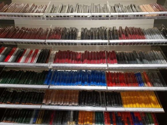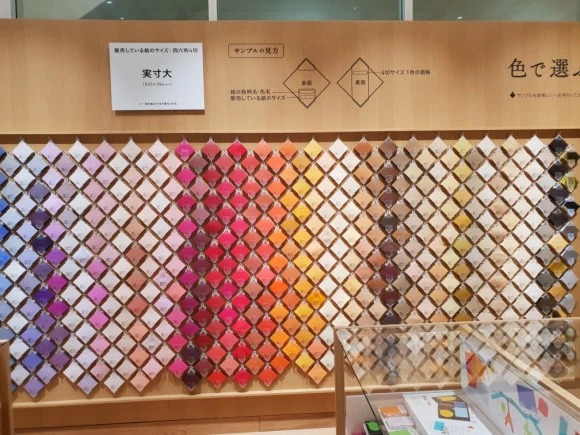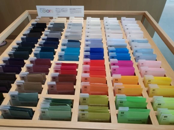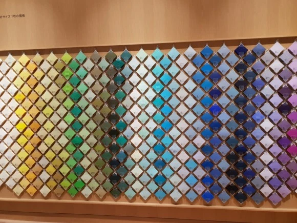 벽면을 그라데이션처럼 장식돼있다. 원하는 색을 찾으라는 것 같은데, 아래 위 사진을 가로로 나열하고도 카메라에 다 담지 못할 만큼 많은 색들이 눈부시다. 수많은 색깔 하나하나마다 이름이 있는 것도 신기하고 다 알지 못하고 불러주지 못해 미안한 마음도 들었다.