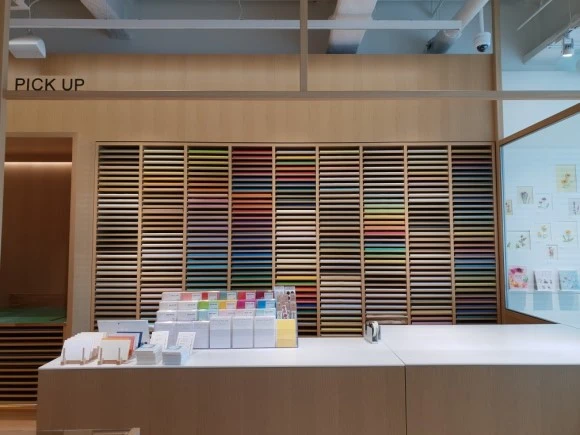 2층은 LETTER. 화선지같은 질감의 편지지부터 까슬까슬한, 맨들맨들한, 어루만지기만해도 기분 좋아지는 편지지가 재질별로 다양하게 진열돼있다.편지지만 해도 종류가 이렇게 많을 줄이야.. 세로쓰기 편지지도 독특했다.