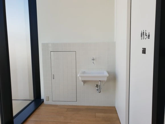 화장실도 어쩜. 작품의 하나처럼 세면대를 화장실 문 입구에 뒀다. 화장실 안이 아니라 복도 끝 화장실 들어가는 입구에 저렇게 있다.