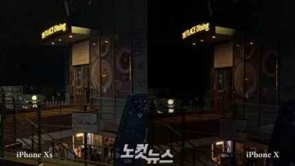어두운 환경에서는 Xs가 확실히 뛰어났다. 해가 진 뒤 남산타워 전망대에서 서울 전경을 찍었을 때 어둠 속에서도 아이폰Xs는 하늘과 땅의 경계가 어느 정도 보였지만, 아이폰X은 뭉개져 보였다.