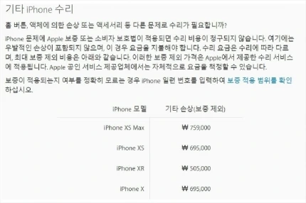악재는 여기서 그치지 않았다. 아이폰 디스플레이 외 다른 부품 손상 등의 기타 손상 수리비는 아이폰XS가 69만 5000원, 아이폰XS맥스는 무려 75만 9000원이다. 웬만한 보급형 스마트폰 한 대를 살 수 있는 금액이다. 그나마, 제품 구매 한 달 안에 이런 손상이 생기면 리퍼폰이 아닌 새 아이폰으로 교체해준다는 것에 위로를 삼아야 했다.