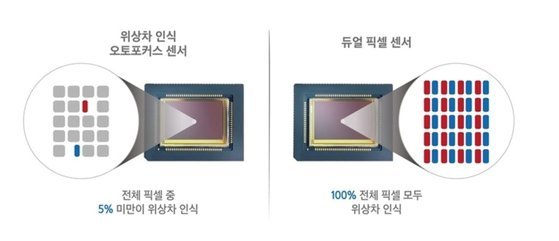 현재 양산 중인 이미지센서 가운데 픽셀 크기가 1.0 마이크로미터(㎛·100만 분의 1m) 미만일 경우엔, '위상차 AF 방식을 쓸 수밖에 없다고 합니다.