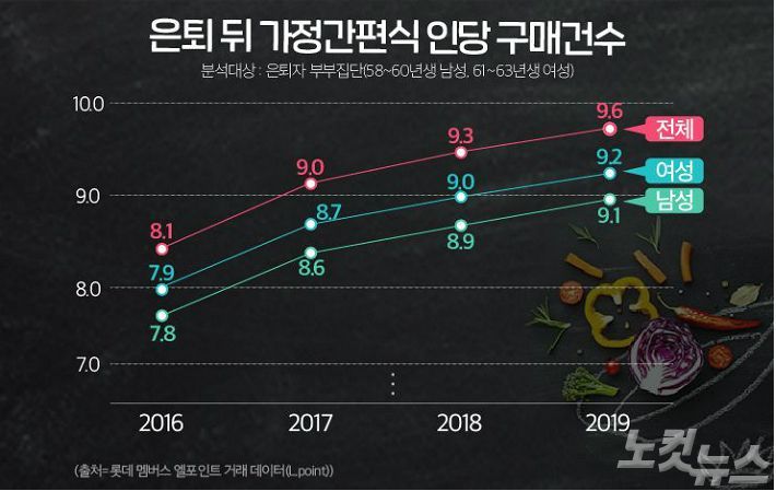 식품 유통업계는 2010년대 중반부터 증가하는 1·2인 가구나 젊은 층을 겨냥해 간편식을 선보였다. 그러나 정작 활짝 지갑을 연 건 5060세대였다. 은퇴 뒤에도 여전히 사회생활에 참여하거나 자기계발을 이어가면서 손쉽게 한 끼를 해결할 수 있는 간편식을 많이 찾는다는 분석이다. 양적·질적으로 크게 성장하면서 선택의 폭이 넓어진 것도 한몫했다.