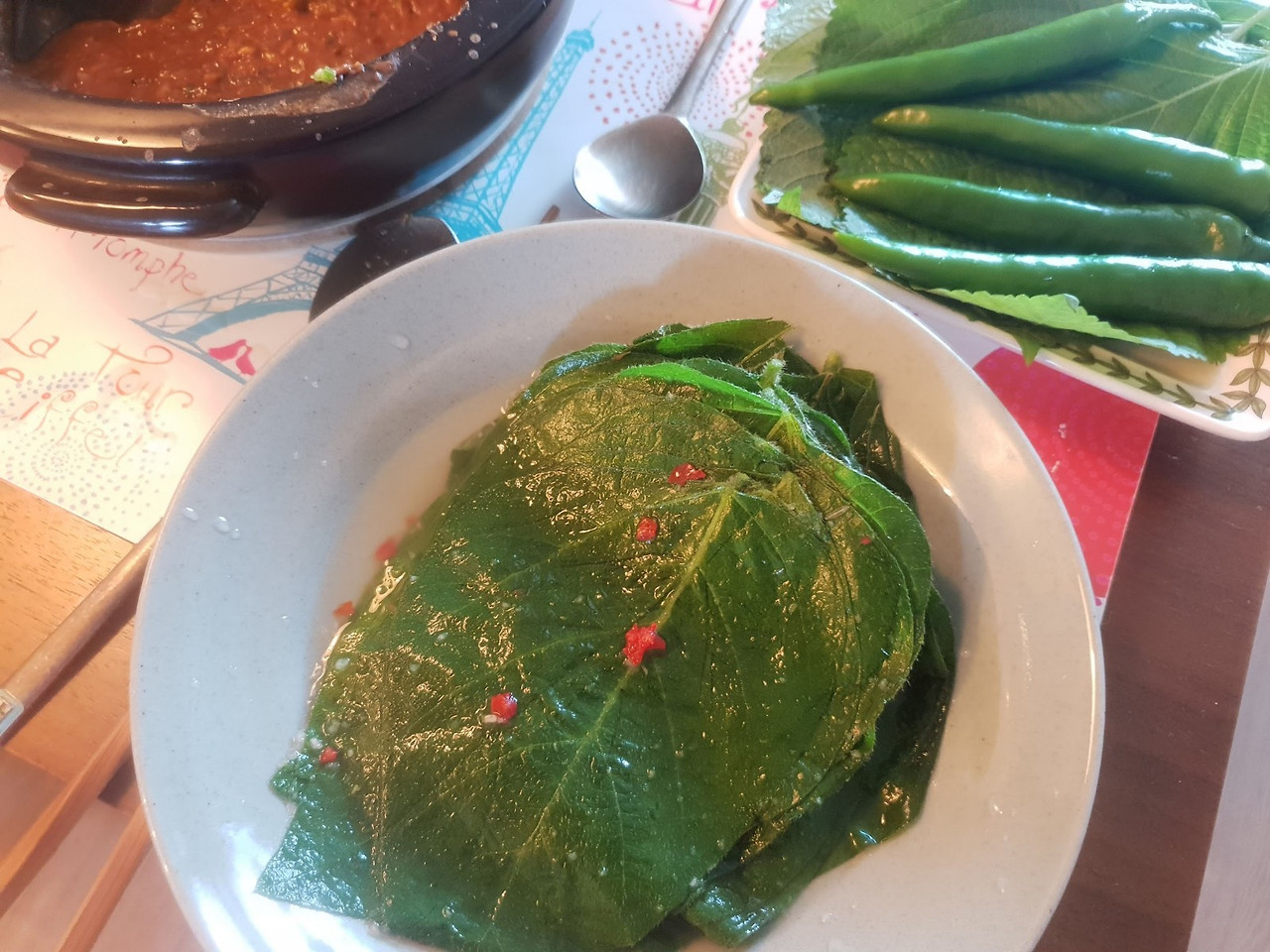 콩잎이 나오면 밥 한 공기는 애피타이저, 두 번째 공기가 메인이다. 콩잎은 사춘기 시절 몸무게를 불린 주범이기도 하다. "다 키로 간다. 대학 가면 살 빠진다"는 말씀만 안 하셨다면 한 공기만 먹고 숟가락을 내려놓았을까.