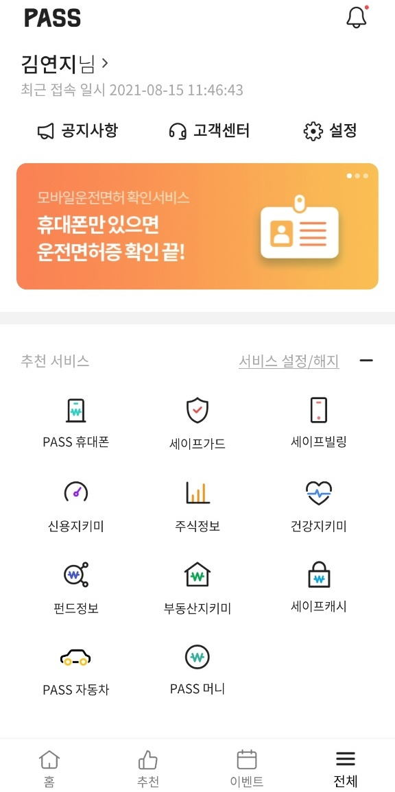 하지만 저는.. 아무리 생각해도, 인증 목적 외에 패스 앱에 따로 들어간 적이 없었어요. (간편 본인 인증이 편하긴 편하더라고요;)