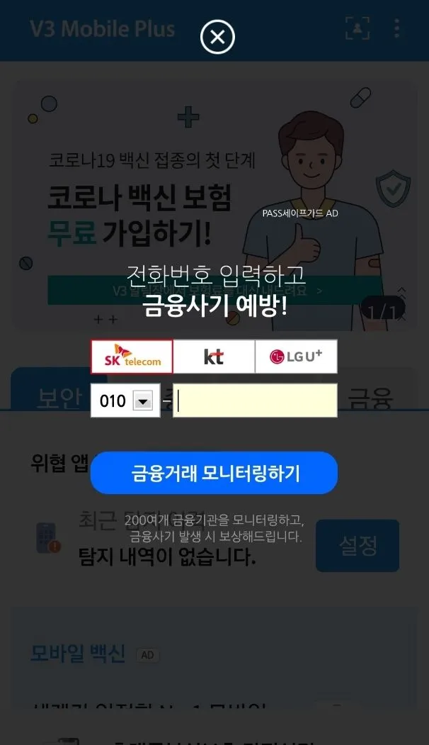 정리하자면, 스마트폰에서 은행 등 금융 관련 앱을 사용하면 V3 앱이 자동으로 실행되는데요,