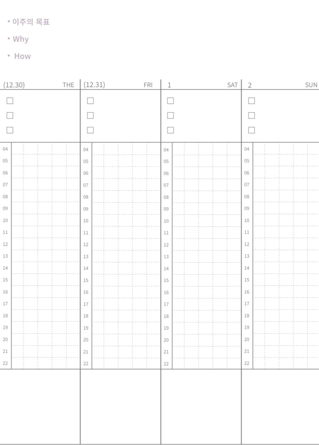이번 주의 목표, 왜 해야 되는지, 어떻게 할 것인지