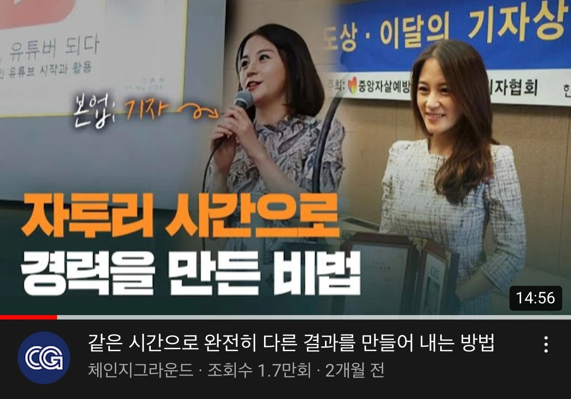 국내 대표 자기 계발 채널 체인지 그라운드에도 그렇게 나가고 싶었는데 이것도 현실이 됐다. (세 꼭지나 나갔고 조회수도 많이 나왔어요^^)