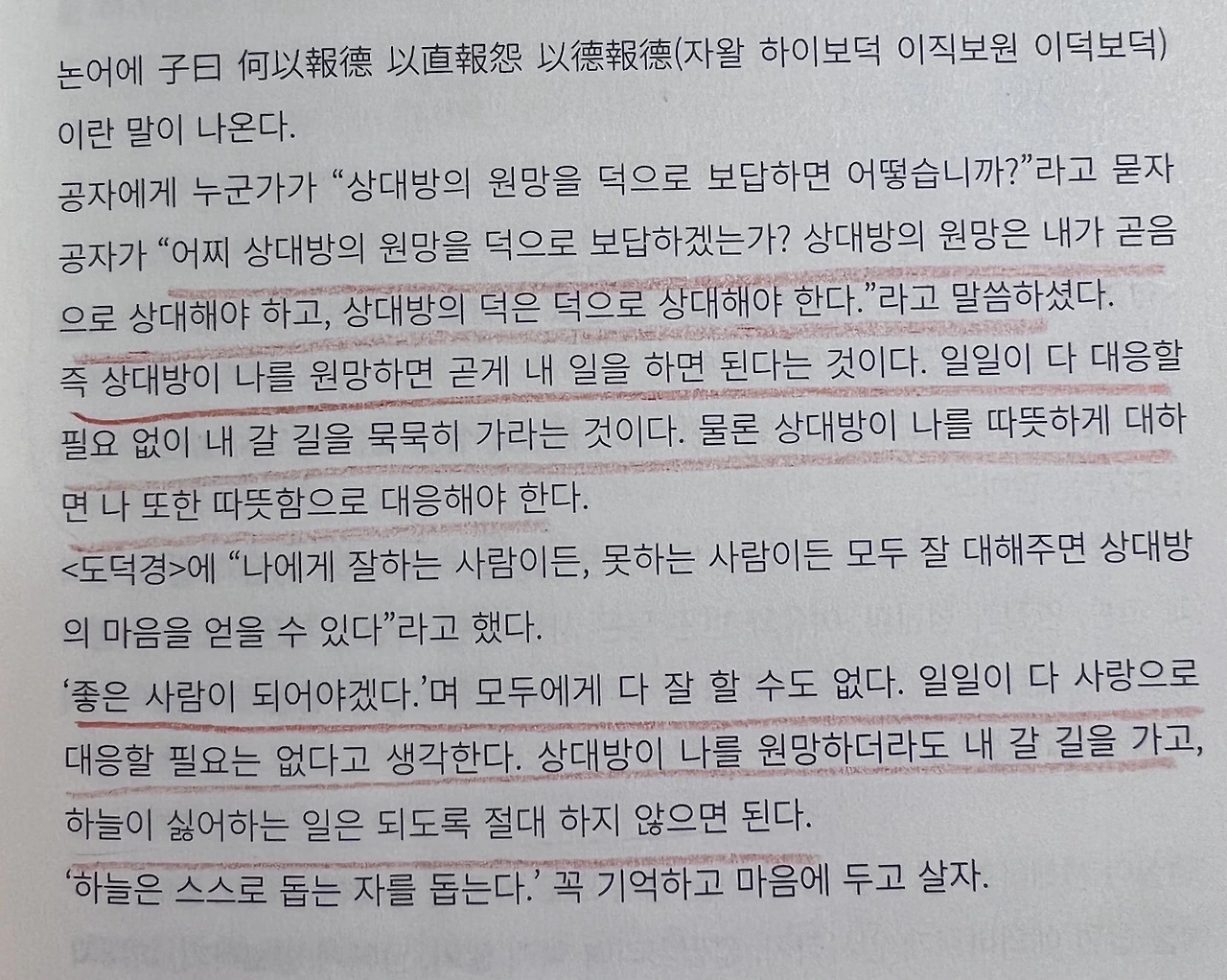 그런데! 역시 책에 답이 있다더니, 그것도 공자님께서 “어찌 상대방의 원망을 덕으로 보답하겠는가?”라고 말씀해주셔서 어찌나 맘이 위로가 됐는지 ..