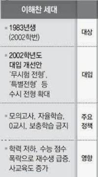 나는 '이해찬 세대'다. 이해찬 세대를 일컬어 당시 어른들은 '정부에 제대로 뒤통수 맞은 세대'라고 칭하기도 했다. 그 뒤통수에는 학생도 있지만 수험생 부모들도 포함된다.