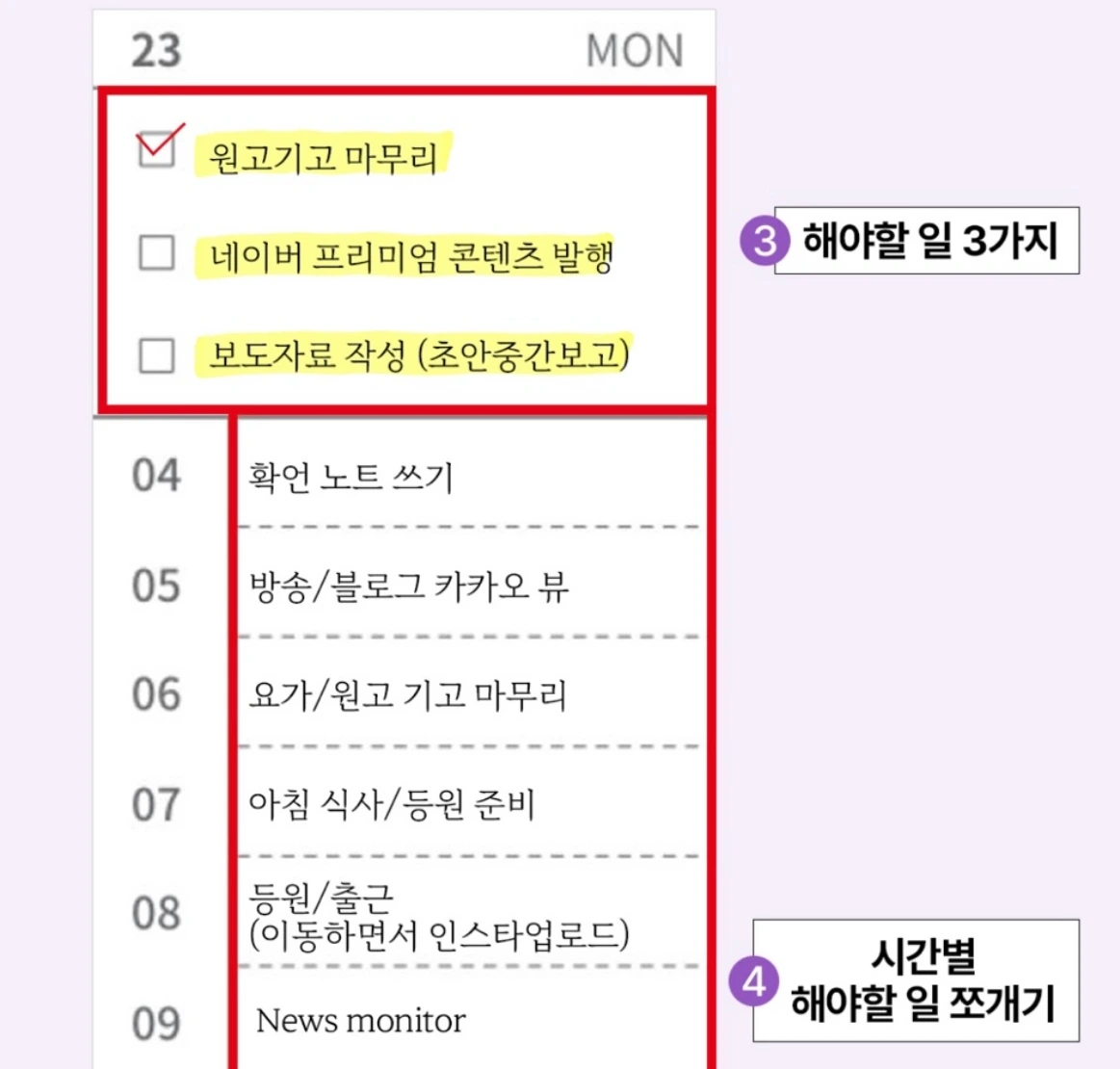 3) 주간 일정과 하루 일과를 한눈에 - 시간이 없다는 핑계는 그만 ‘나를 위한 시간 찾기’