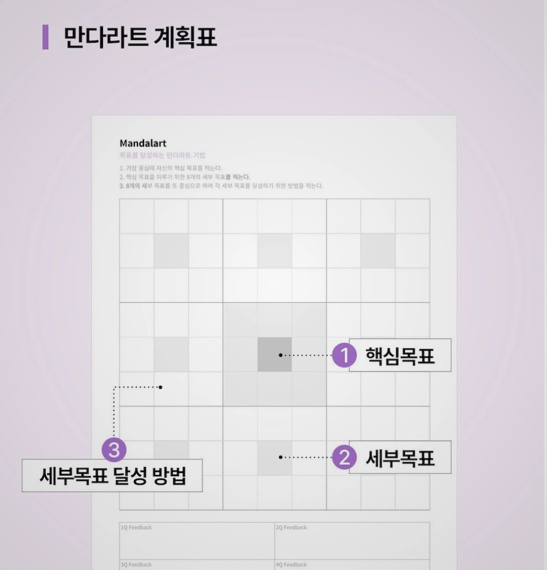 이렇게 만다르트를 채우다 보면 그 과정에서 자신에 대해 돌아보면서 나의 꿈, 목표, 내가 원하는 삶 등에 대해 돌아보면서 진짜 나 자신으로 사는 구체적인 계획을 찾게 됩니다.