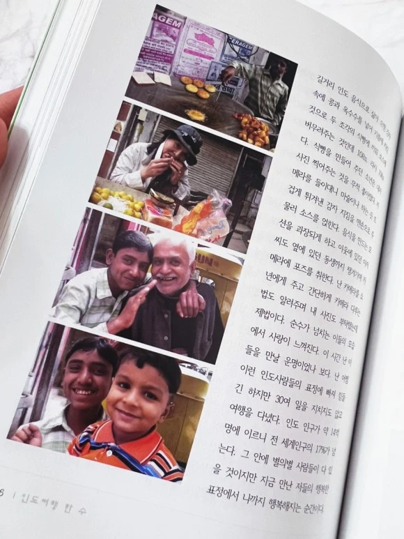 남들 다 걱정하고, 가지 말라고 말리는 인도가, 그녀는 인생 최고의 여행이라고 꼽는다. 만나는 사람마다 다 귀인이었고, 여행자인 당신을 환대해 줬고, 값진 미소를 선사하고 콩 반쪽도 나눠먹는 베풂을 보여준. 그래서 그녀는 인도에 대한 편견을 깨고 싶었던 듯하다.