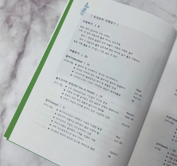 마지막에는 설렘 반, 긴장 반이었을 그녀의 여행을 지지해 준 가족의 응원이 담겼다. 인도 여행에 필요한 간단한 회화까지 친절히 알려준다.