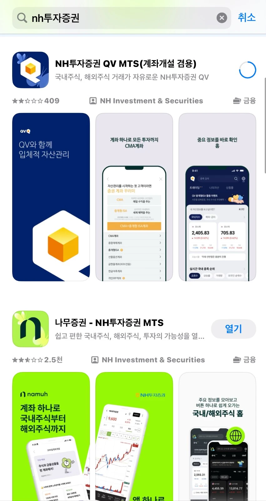 - 앱스토어 or 구글플레이스토어에서 모바일 앱(QV 또는 나무) 설치