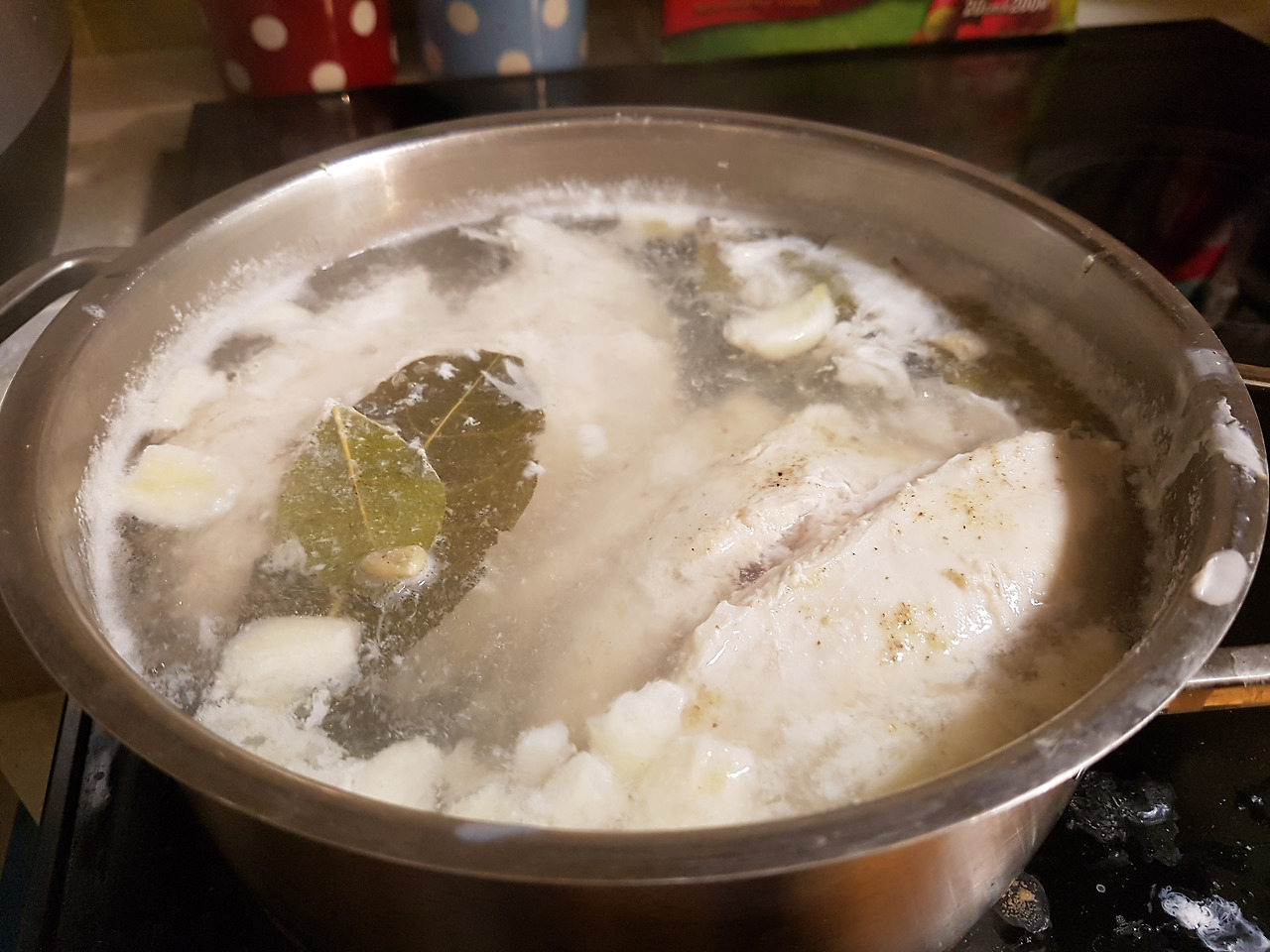 월계수 잎과 마늘을 넣어 삶은 뒤