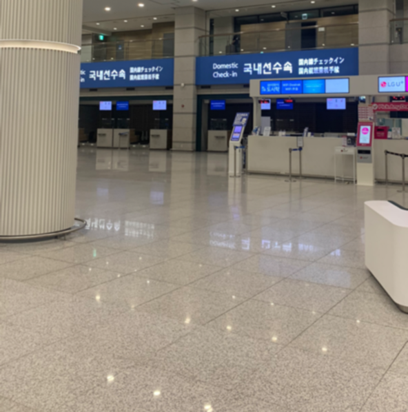 새벽 시간 입국장을 향해 가는 길, 공항은 한산해 보였고 불은 밝아 따스했다.