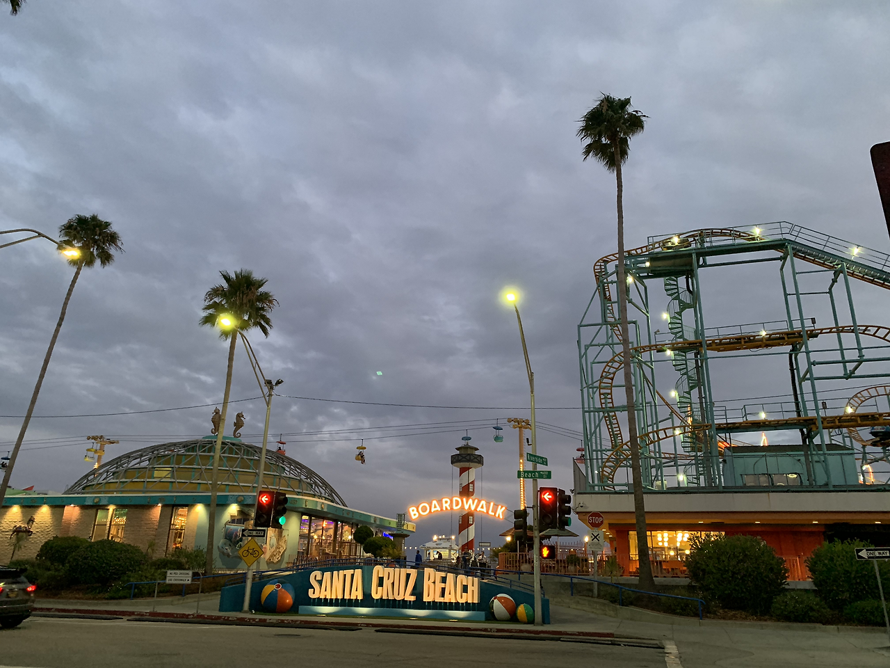 요즘은 야간 개장까지 하고 있으니 저녁까지도 시끌시끌. 그러다 날이 어둑해지면 관광객들이 썰물처럼 빠지고 그제야 한산해지는 가을밤의 보드웍(Boardwalk)과 산타 크루즈 해변.