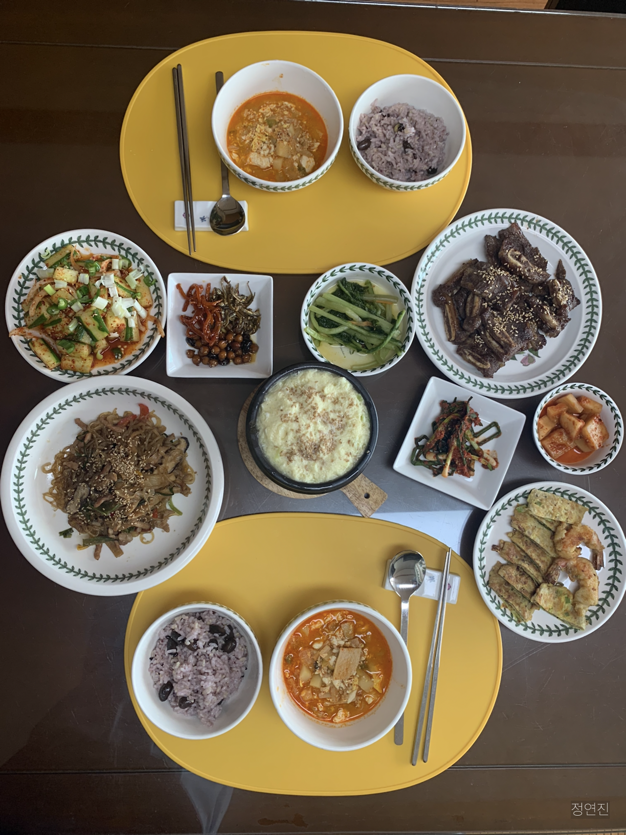 새벽녁에야 잠이 들었다던 선배는 어느 새, 10첩 반상을 준비 중이셨다! 보통 수업과 수업 사이에는 간식도 잘 안 먹고, 캠퍼스에서도 벗어나지 않는 편이라 라면에 김치반찬이어도 나는 좋았을 것이었다. 선배에게 이런 따뜻한 밥상 한 번 차려 드린 일이 없는데…. 반쯤 준비된 식탁을 마주한 순간 마음이 컥 했다.