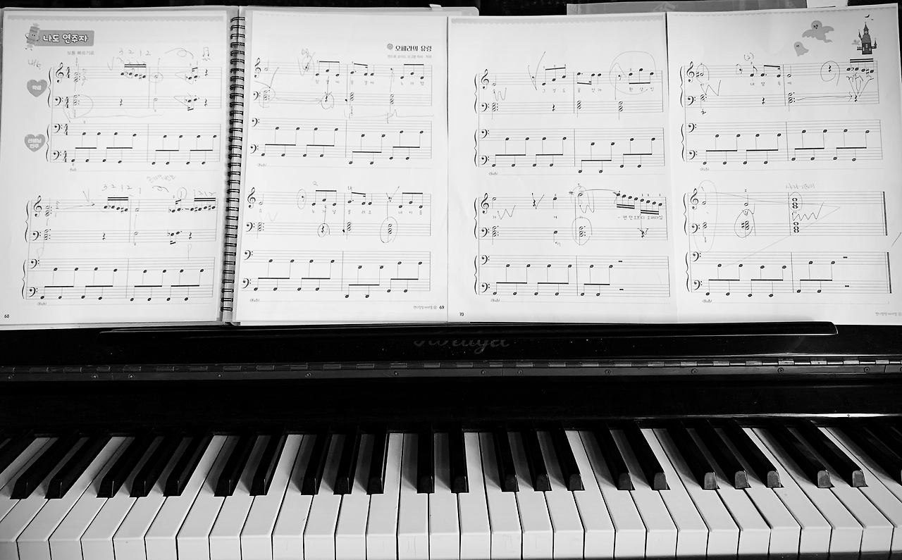 두어 번 연습하니, 나도 그때 연주하던 그 초등학생 정도로 치게 되었다. 신기하다. 아, 마지막 부분만 조금 더 테크닉으로 처리하면 되겠다.