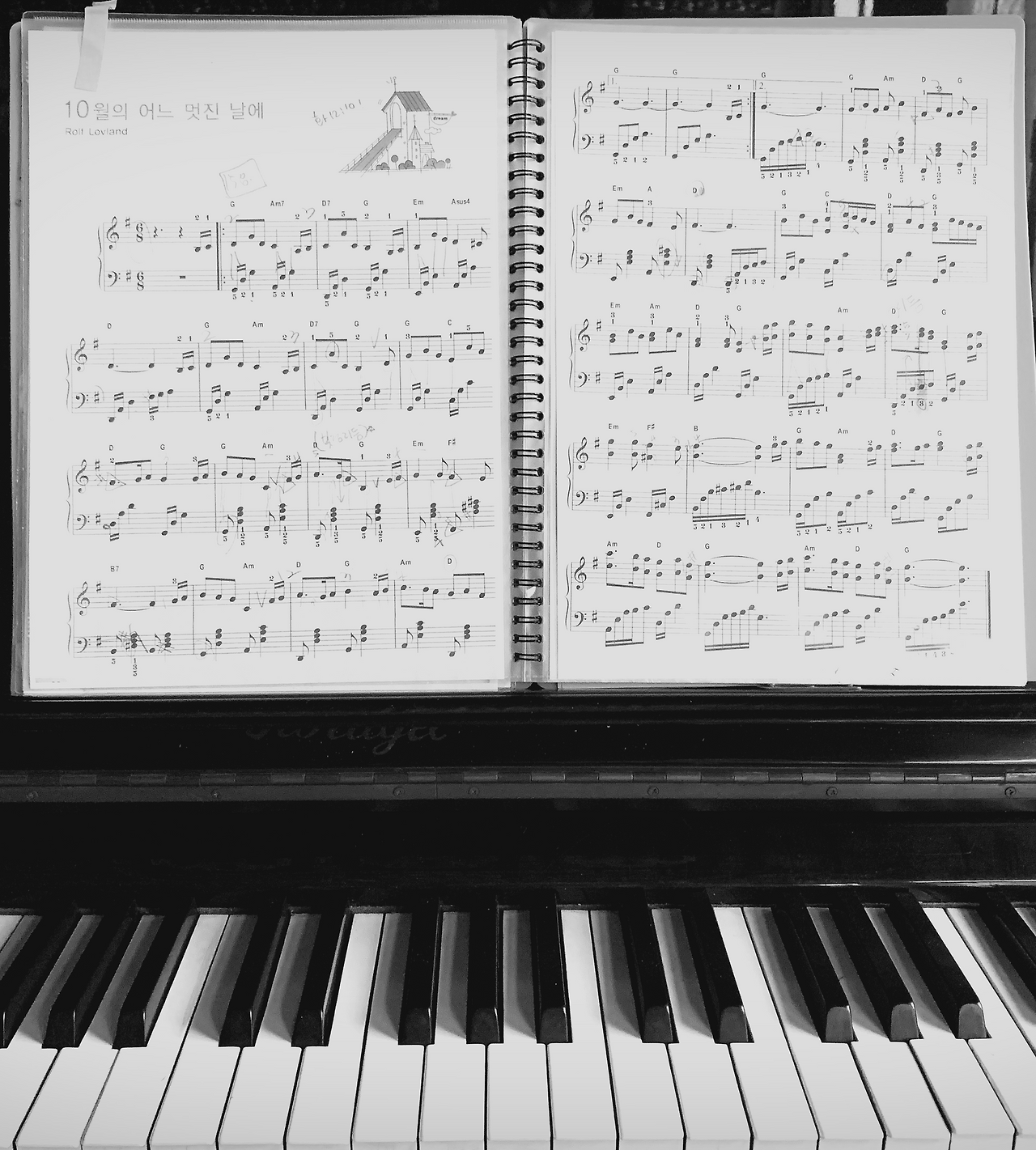 그나마 그중, 성악곡으로도 잘 알려진 [10월의 어느 멋진 날에]는 바로 배울 수 있을 것 같다고 해서 다행이었다. 적당히 발라드풍이 좋은 나는 멜로디만이라도 연주해 보고 싶었다.
